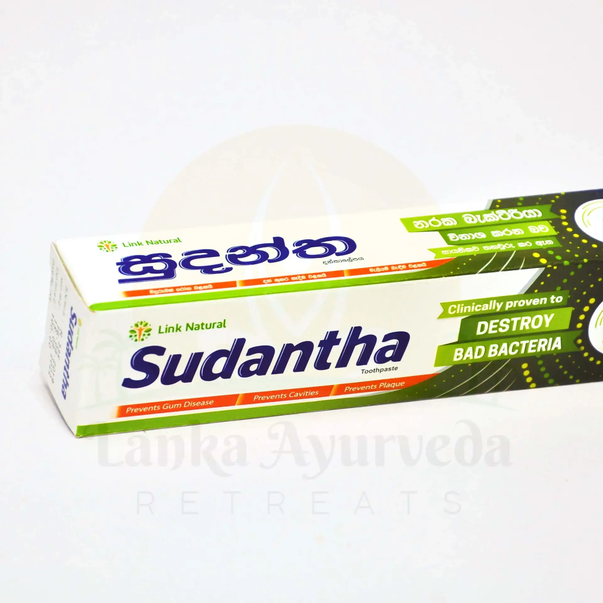 Prevents Gum Disease, Prevents Cavities, Prevents Plaque, Clinically Proven to destroy bad bacteria. Bad bacteria are the root cause of all common oral health problems. Sudantha, through its clinically proven unique formulation, destroys bad bacteria and promotes good oral health. A blend of time tested herbs for oral care.